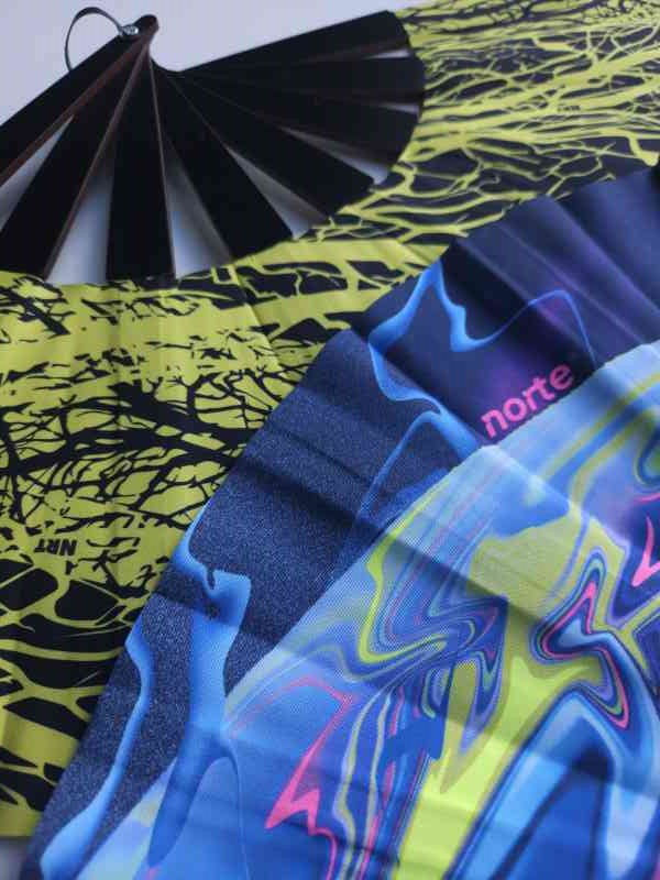 Varillas de madera. Tela sublimada. Alto 28cm, Ancho 52cm abierto.