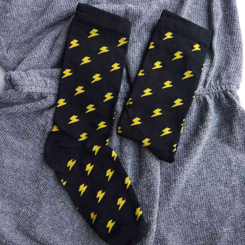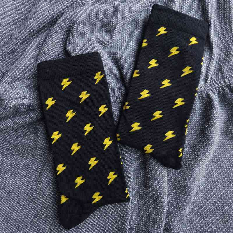 Medias con base amarilla y cebras pequenas. Es un animal que representa comunidad, liber...